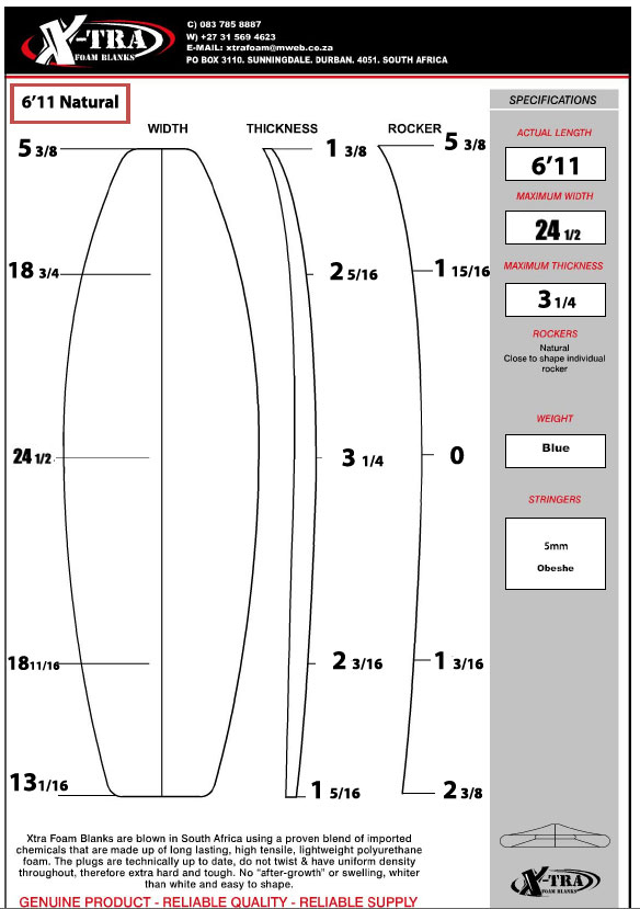 Xtra Foam Fish 6’11” Blank Natural Rocker