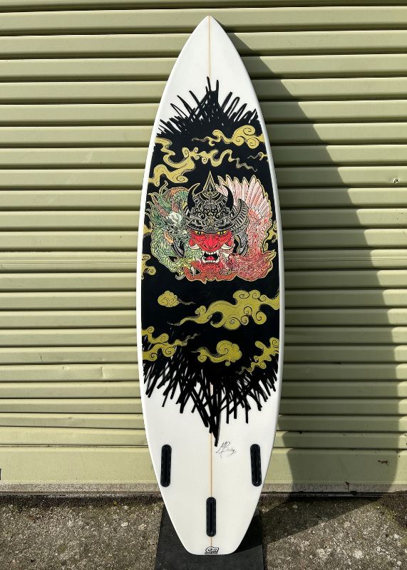 The beautiful custom artwork hand painted by Marina Beling makes this an original and completely unique shortboard.